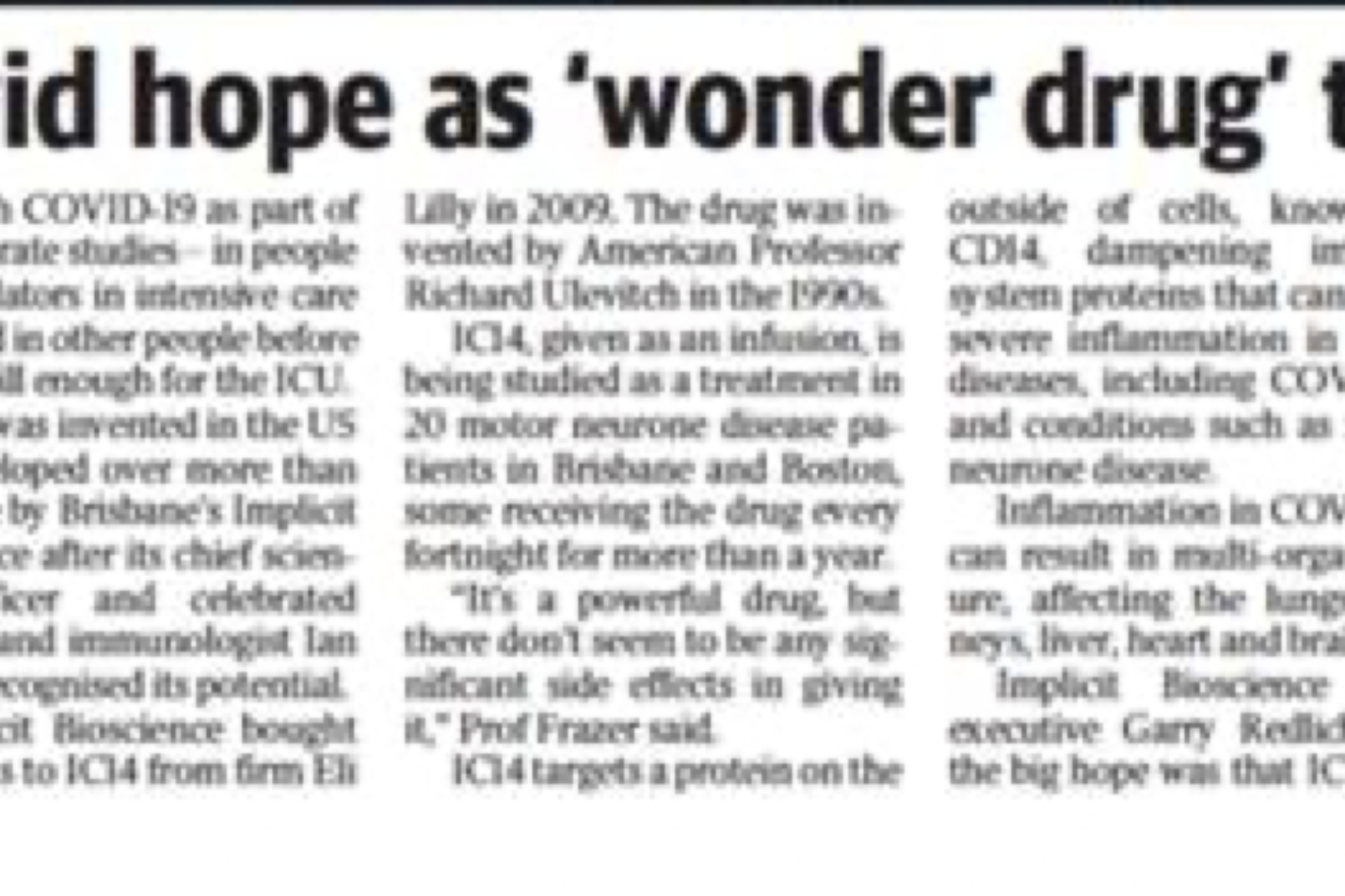Courier Mail: “Brisbane Covid hope as ‘wonder drug’ trialled in US”